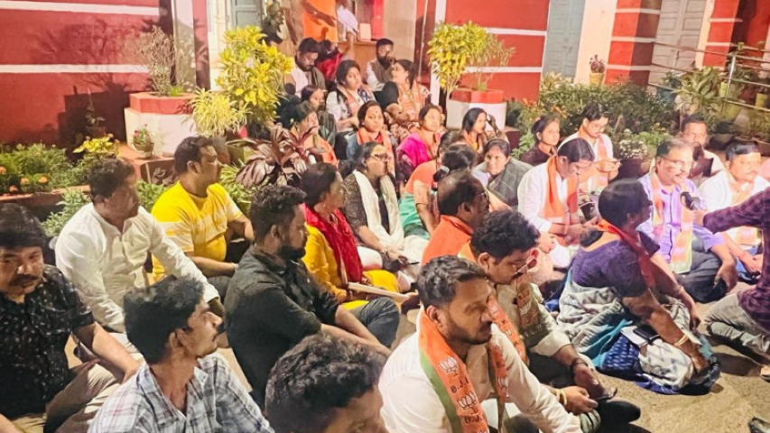 Odisha BJP leaders and workers launched a dharna (sit-in protest) in outside the Capital police station here in protest of the arrest of 22 Bharatiya Janata Yuva Morcha (BJYM) activists including state president Irasish Acharya.