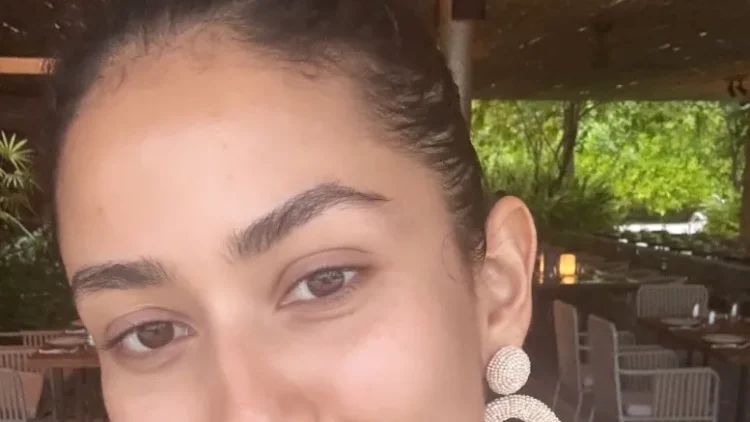 Recently, Mira Kapoor took to the stories section of her official Insta handle and dropped a stunning picture of herself in a white and brown striped silk shirt. Her look was completed with some light makeup, hoop earrings, and her hair tied up in a tight bun.