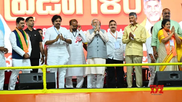 Prime Minister Modi, Chandrababu Naidu, and Pawan Kalyan came together for a public rally after a gap of 10 years. In 2014, the Jana Sena did not contest the polls but Pawan Kalyan campaigned for the TDP-BJP alliance. Pawan Kalyan later distanced himself from both the TDP and the BJP. The TDP too had severed ties with the BJP in 2018.