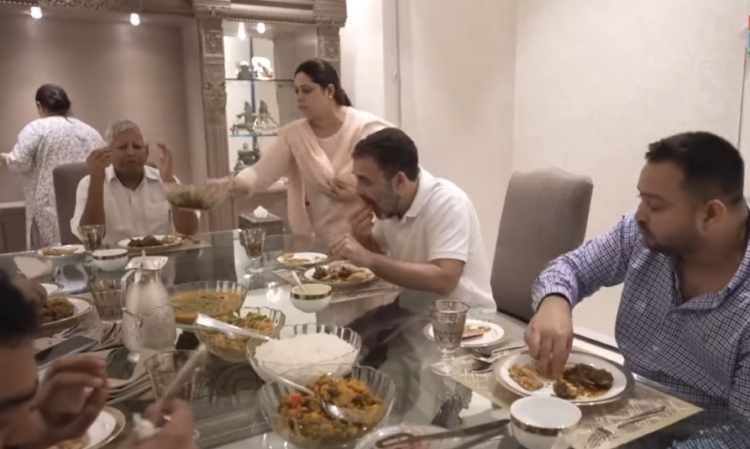 Congress on Saturday released a video of Rahul Gandhi’s visit to Rashtriya Janata Dal (RJD) supremo Lalu Prasad Yadav’s and his family members in Delhi where they chatted over food and politics with Champaran mutton.
