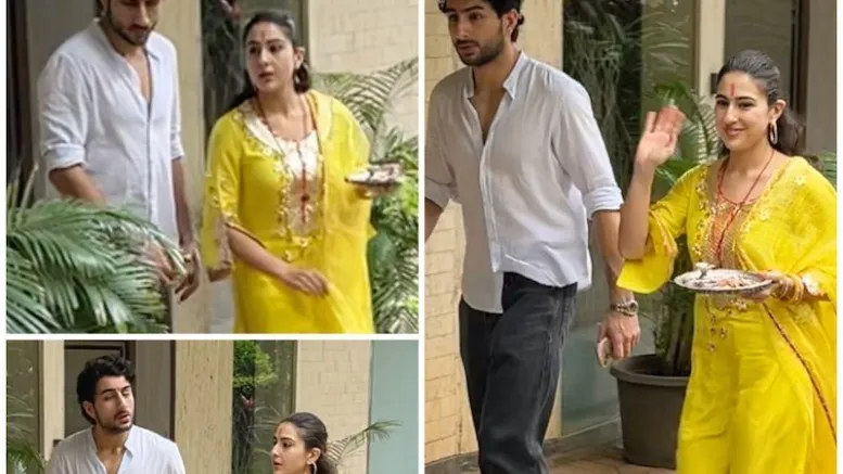 Sara Ali Khan dazzled in a bright yellow suit, which she complemented with matching yellow juttis. Carrying a pooja thali, she embraced the traditional spirit of Raksha Bandhan, making a graceful appearance. Her attire was both elegant and festive, reflecting the joyous mood of the celebration.
